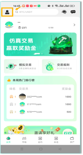 (2)点击首页左上角的图案