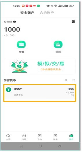 您的资金将退还至【资金账户】,模拟交易产生的手续费优先从冻结的 10U 激活资金中扣除。