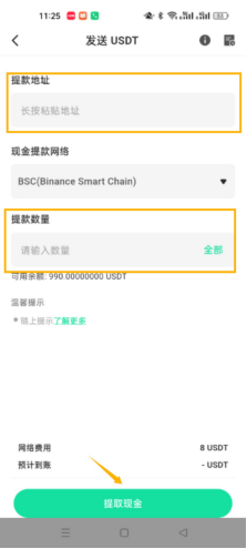 (3.1) 选择您提现的网络,粘贴提款地址并输入您的提款数量