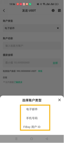 (4.1) 选择账户类型(电子邮件/手机号码/Fibay用户ID)