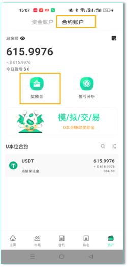 您在 FIBAY 模拟交易的盈利,将以奖励金形式记录,单独存入合约账户【奖励金】专区